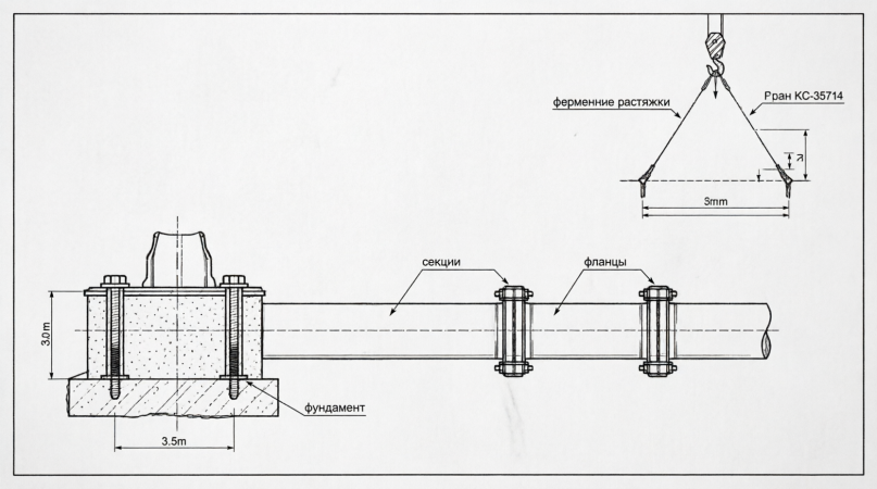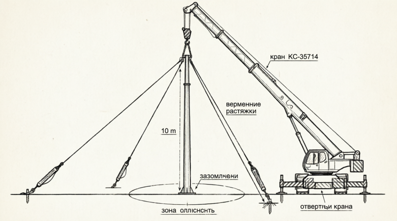 Чертеж 2: Подъем краном с временными растяжками
