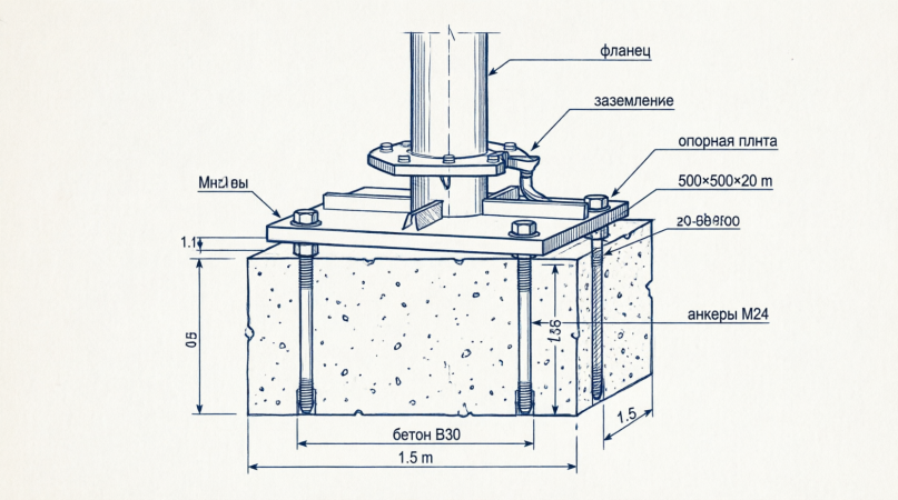 Чертеж 3: Узел закрепления на фундаменте